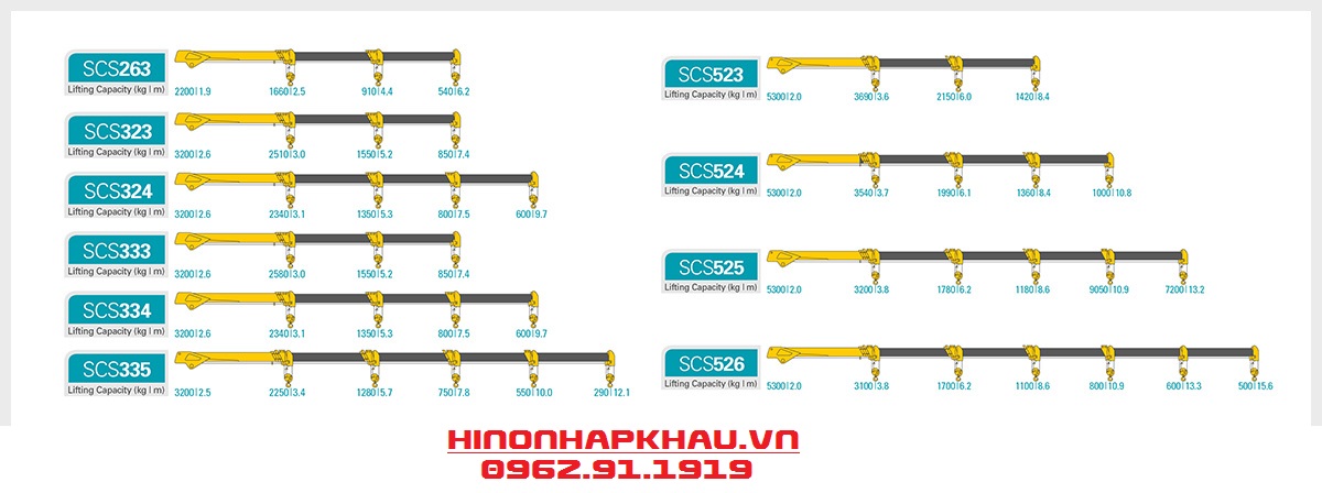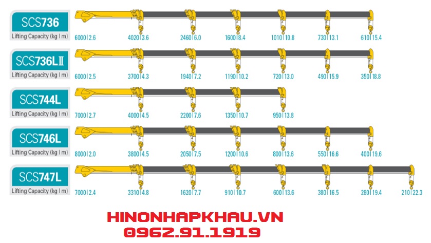 - Giá xe cẩu tự hành Hino 16 tấn FL8JTSA gắn cẩu 7 tấn SOOSAN SCS746L: Cẩu 6 đoạn sức nâng max 8.4t/2.0m, tầm với max: 19.6m/400kg giá: 2.400.000.000 VNĐ