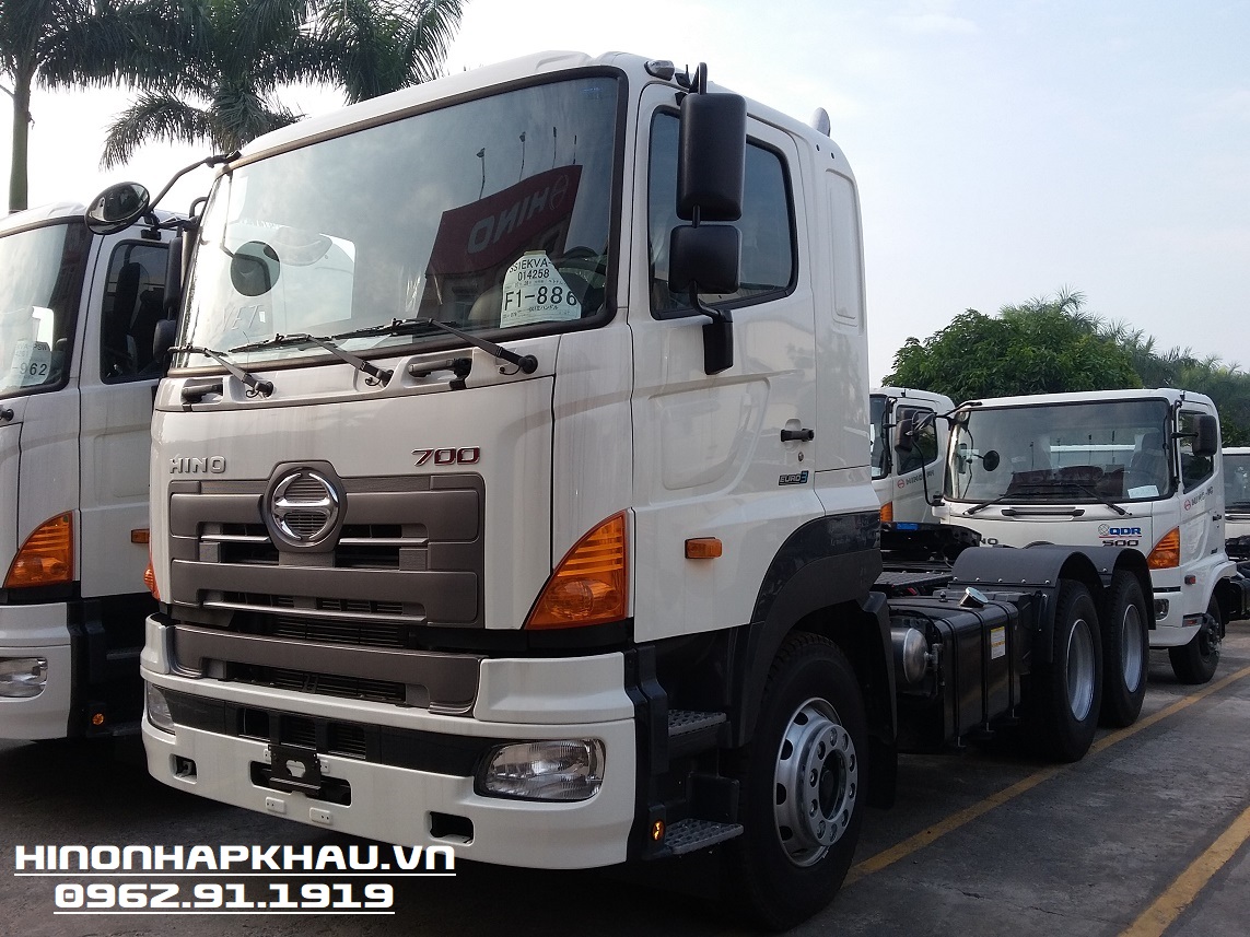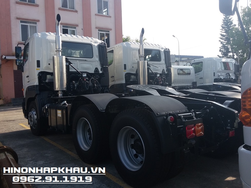 - Ngoài dòng sản phẩm xe đầu kéo 2 cầu Hino nhập khẩu nguyên chiếc tại Nhật Bản như hiện hành. Hino Motors tiếp tục giới thiệu dòng xe Hino đầu kéo 2 cầu (6x4) nhập khẩu từ nhà máy Hino Motors tại Trung Quốc. Với tiêu chí tiếp tục được giữ vững: Chất lượng - Độ Bền - Đáng tin cậy (QDR). Thông số kỹ thuật, giá cả phù hợp thị trường, đảm bảo độ tin cậy cao, đảm bảo lợi thế về tiêu thụ nhiên liệu, dung dịch Urea, ứng dụng cấu trúc chassis Hino mới nhất đảm bảo chắc chắn và giảm tối đa trọng lượng bản thân xe. Vì vậy, Hino Việt Nam tự tin cung cấp tới tất cả khách hàng dòng sản phẩm xe đầu kéo đa dụng mới phù hợp với lái xe đường dài và vùng núi.