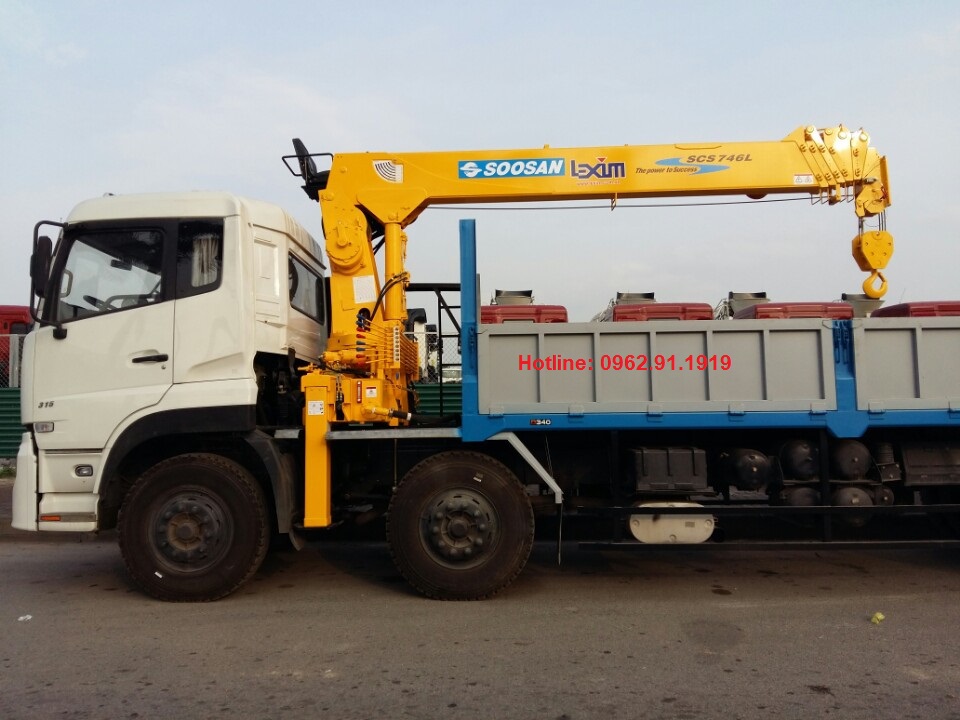 Xe DONGFENG Hoàng Huy gắn cẩu - Dongfeng 4 chân L315 gắn cẩu Soosan 7 tấn SCS746L là sản phẩm xe tải Dongfeng Hoàng Huy nhập khẩu nguyên chiếc được lắp đặt cẩu Soosan 7 tấn 6 đốt nhập nguyên chiếc Hàn Quốc.