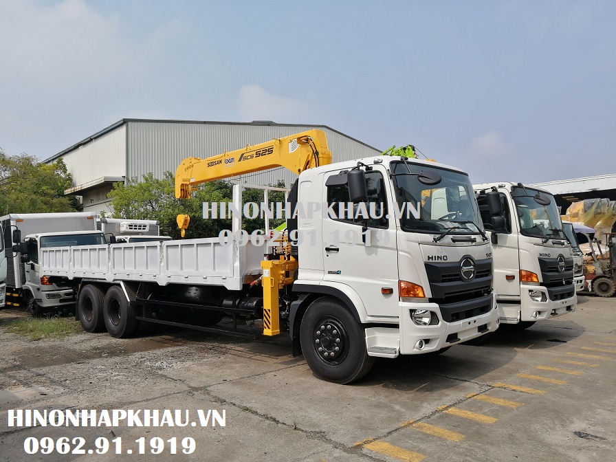 - Xe tải gắn cẩu Hino 13 tấn với kích thước thùng sau gắn cẩu ngoài lựa chọn bản thùng dài 8,5m, chúng tiếp tiếp tục giới thiệu thêm bản thùng dài 6,8m rất phù hợp cẩu và chở hàng cồng kềnh đặc biệt trong ngành sản xuất, phụ trợ phục vụ xây dựng như: cống li tâm, cột điện, giàn giáo, bê tông... Xe tải cẩu Hino 15 tấn được trang bị Động cơ Diesel HINO J08E - WD (Euro V) 6 xi-lanh thẳng hàng với tuabin tăng nạp và làm mát khí nạp cho công suất 280 Ps tại 2.500 vòng phút với mô măn xoắn cực đại 824 N.m tại 1.500 vòng/phút. Xe được trang bị hộp số 9 cấp hoàn toàn mới M009 với 9 số tiến, 1 số lùi, đồng tốc từ số 1 đến số 9. Hệ thống lái loại trục vít đai ốc bi tuần hoàn, trợ lực điện, với cột tay lái có thể thay đổi độ nghiêng và chiều cao. Ly hợp loại đĩa đơn ma sát khô lò xo, dẫn động thủy lực, trợ lực khí nén.