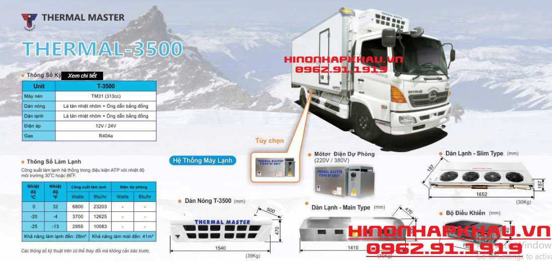 - Xuất xứ: Máy lạnh thùng xe đông lạnh Hino 8 tấn sử dụng máy lạnh Thermal Master chính hãng nhập khẩu nguyên chiếc Hàn Quốc.