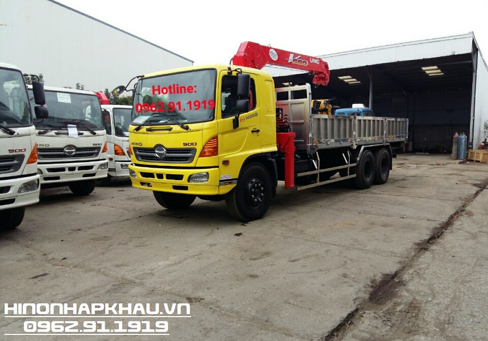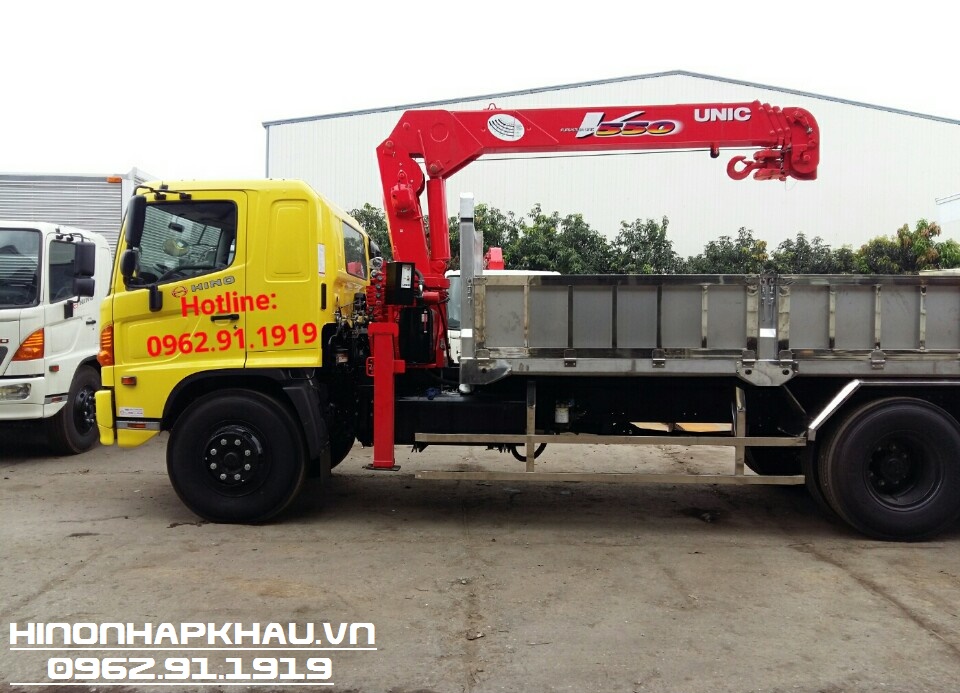 - Xe tải cẩu Hino 3 chân gắn cẩu 5 tấn 4 khúc Unic UR-V554 có thiết kế xe nền cơ sở là dòng xe tải Hino 15 tấn FL8JT7A Euro 4. Xe được gắn Cần cẩu thủy lực nhãn hiệu UNIC được nhập khẩu từ nhà máy UNIC Thái Lan với sức nâng 5 tấn cùng tầm với 10,63m.