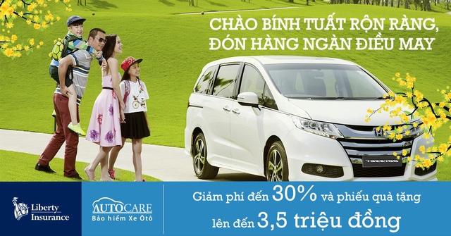 Nhân dịp năm mới, Bảo hiểm Liberty có chương trình ưu đãi giảm phí bảo hiểm cho gói Autocare lên tới 30% với các dòng xe Toyota, Ford, Honda, Hyundai… khi chủ xe mua mới bảo hiểm qua tổng đài 1800 599 998. Đồng thời tặng phiếu xăng/phiếu quà tặng tới 3.5 triệu đồng khi mua bảo hiểm ô tô hoặc sức khỏe.