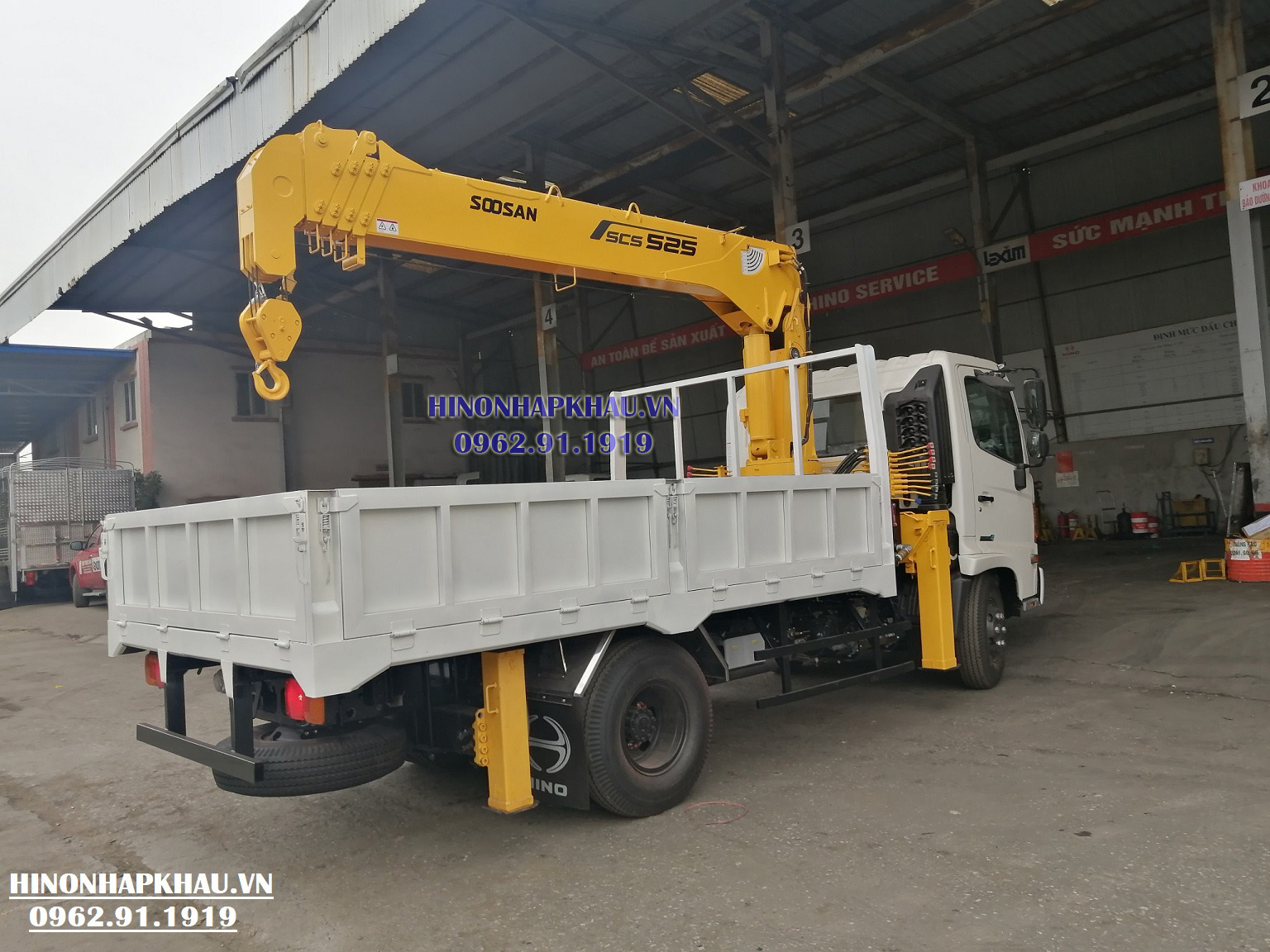 6. HÌNH ẢNH XE TẢI HINO 3 CHÂN LẮP CẨU SOOSAN 5 TẤN 5 KHÚC SCS525 GIÁ: 2.690.000.000 VNĐ