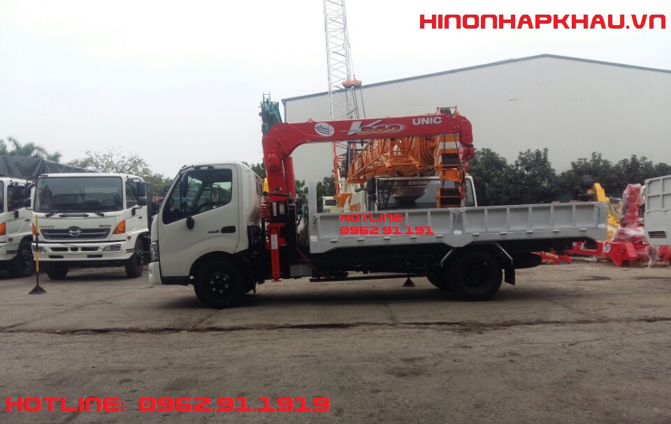 Cần cẩu Unic URV340 - Xe tải Hino 4,5 tấn XZU720 gác cẩu UNIC 3 tấn 3 khúc URV343: