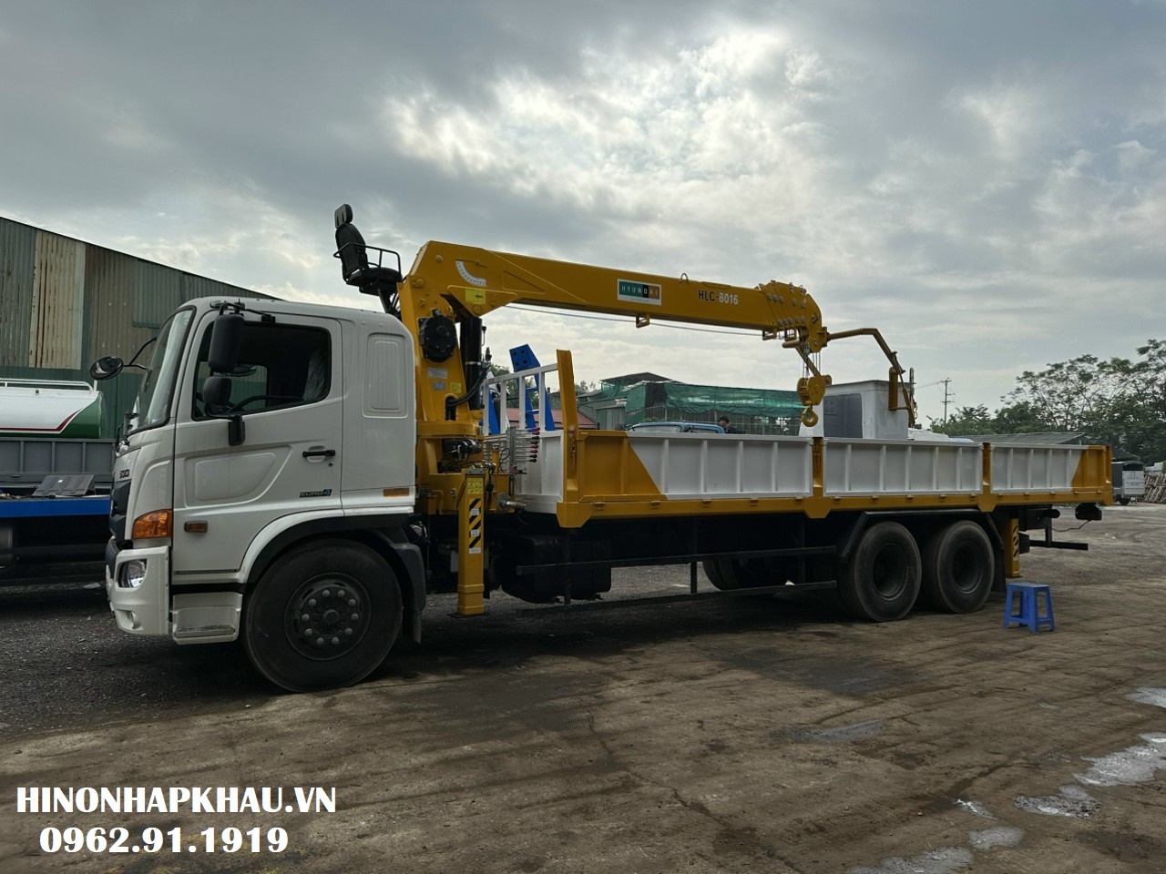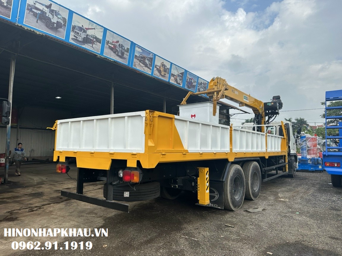 - Xe cẩu hino 500 – Model FM8JW7A lắp cẩu 8 tấn Hyundai Everi là mẫu xe hai cẩu có thiết kế tổng trọng tải 24000 kg . xe sử dụng động cơ Hino J08E-WA tiêu chuẩn khí thải Euro 5 mới nhất hiện nay.với 6 xi-lanh thẳng hàng với tuabin tăng nạp và làm mát khí nạp . có dung tích 6784 cc với hệ thống phun nhiên liệu điều khiển điện tử . xe cho công suất cục đại 280 – (2.500 vòng/phút) và momen xoắn cực đại 824 – (1.500 vòng/phút) . Bên cạnh đó xe tải hino Hino 500 FM còn được trang bị nhiều tính năng hiện đại khác như hệ thống gài cẩu điện tử , hệ thống nâng cabin bằng điện , hệ thống giảm xóc cabin bằng loxo