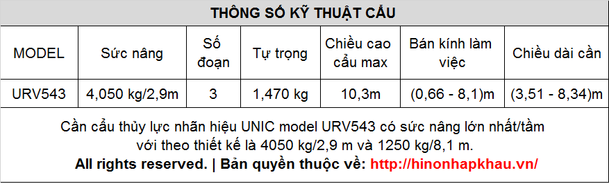 - Cẩu UNIC URV547 ( 4 tấn 7 đốt)