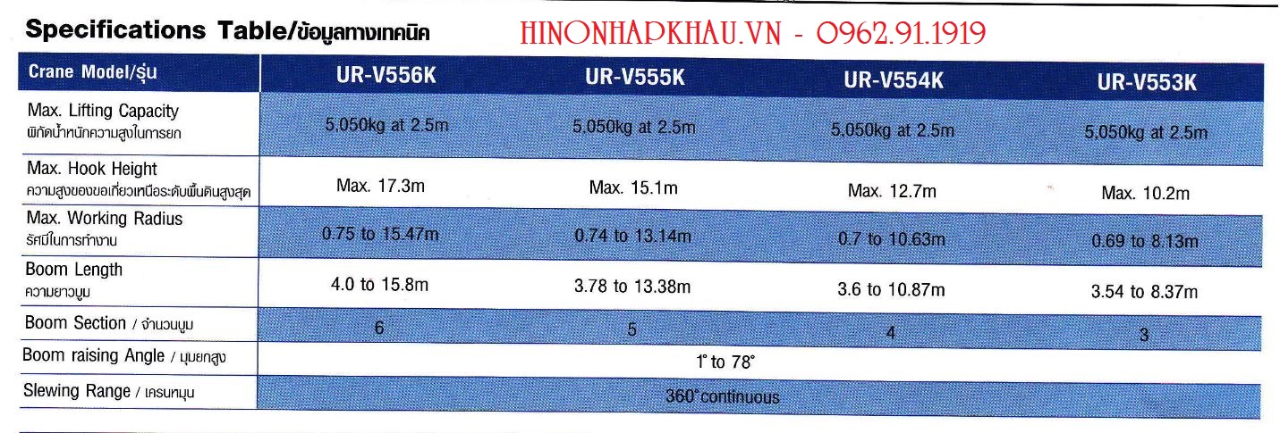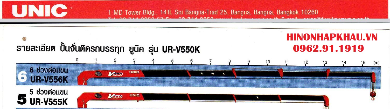 * THÔNG SỐ KỸ THUẬT CẨU UNIC 5 TẤN 6 KHÚC UR-V556K PHIÊN BẢN MỚI NHẤT: