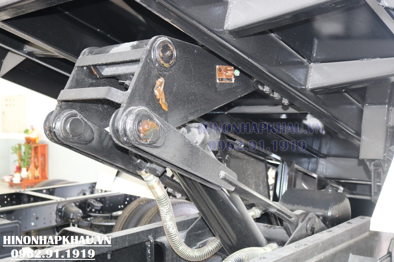 - Thùng ben hino 3 tân rưỡi 2.8m3 áp dụng công nghệ hàn bấm đa điểm bền chắc, được phun sơn tĩnh điện bền bỉ với thời gian, số khối thùng lên đến 2.8 khối có thể chuyên chở vật liệu đa dạng về kích thước. Hệ thống nâng ben cộng lực chữ A hiện đại nhập khẩu Samid Thái Lan, tác dụng lực lên trục sau cho góc nâng ben lớn giúp hạ tải nhanh chóng và hiệu quả. Xi lanh thủy lực trục lớn mạnh mẽ cho sức nâng vượt trội. Chassis tiêu chuẩn kết cấu 2 lớp chắc chắn chịu kéo tải tốt, chống rung gầm trong quá trình vận tải.