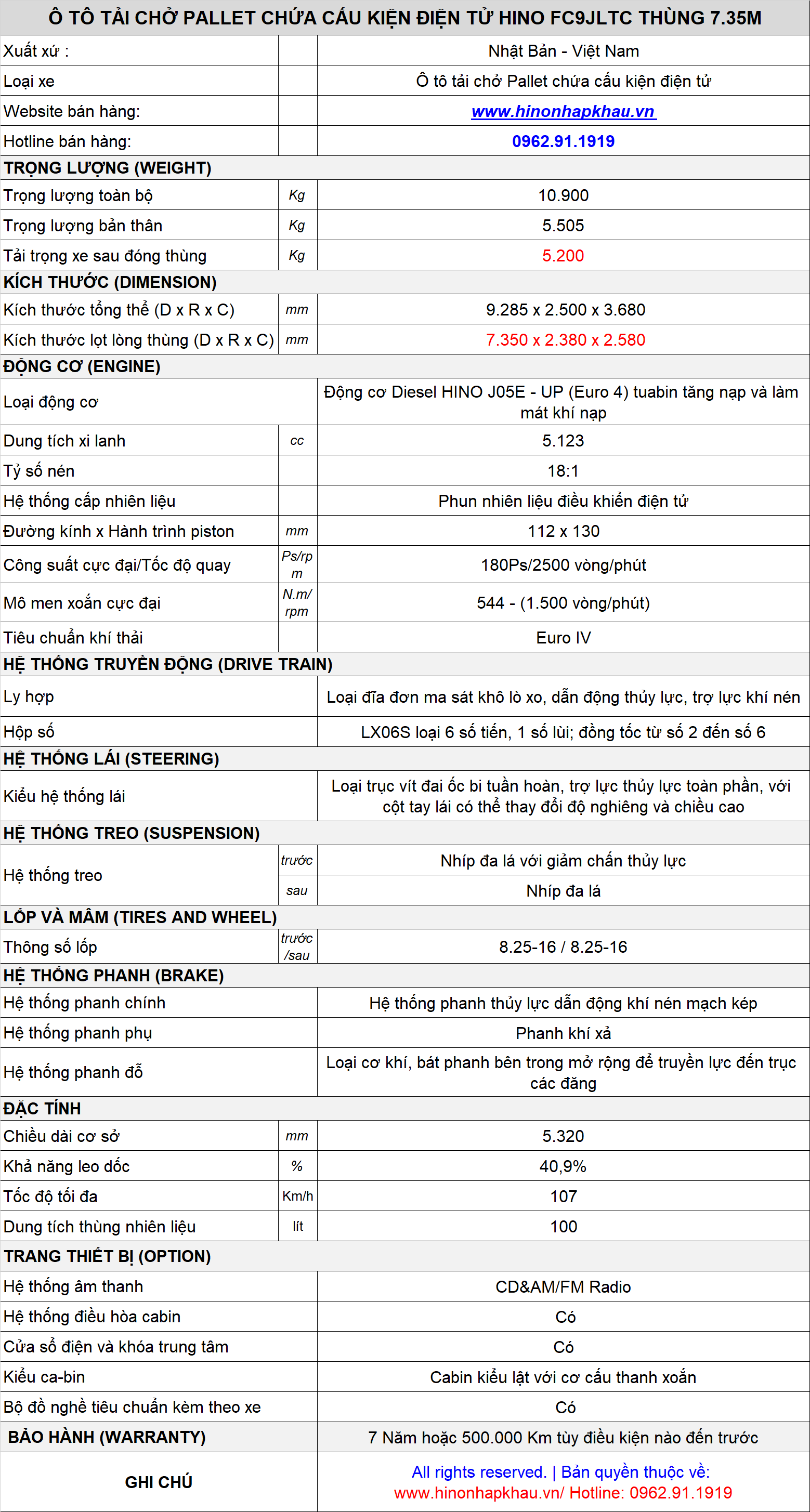 * THÔNG SỐ KỸ THUẬT HINO CHỞ PALLET CHỨA CẤU KIỆN ĐIỆN TỬ THÙNG KÍN DÀI LỌT LÒNG 7,35M ĐỜI 2022 Ở BẮC NINH: