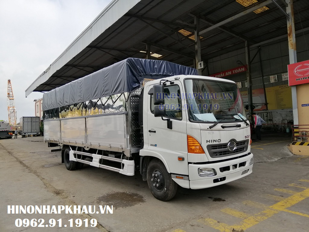 - Xe tải thùng mui bạt Nhôm hino 6 tấn rưỡi thuộc dòng xe tải hino 500 FC Series. Có thể nói Hino 500 FC Series là niểm tự hào của Hino Motors đến thời điểm hiện tại. Ngay từ những ngày đầu ra mắt hino 500FC Series mui bạt Nhôm đã gây tiếng vang lớn không chỉ trong nước mà trên thị trường quốc tế bởi sự đang dạn cơ động về lựa chọn kích thước thùng dài: 4m3, 5m7, 6m7 và 7m3 và sự thay đổi nâng cấp toàn diện cả về ngoại thất, nội thất. Những thiết kế cực kỳ ấn tượng, đường nét tinh xảo cùng những trang bị tiện nghi hiện đại làm lột xác hoàn toàn hình mẫu của một chiếc xe tải Hino 6 tấn rưỡi mui bạt Nhôm trong suy nghĩ của người dùng trước đó. Hino 50 FC Series thùng bạt nhôm có 4 phiên bản lựa chọn.
