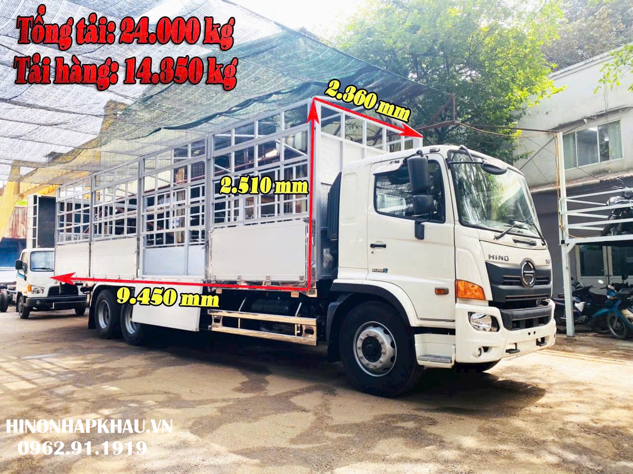 - Kích thước lòng thùng: DxRxC= 9.400 x 2.360 x 2.510mm