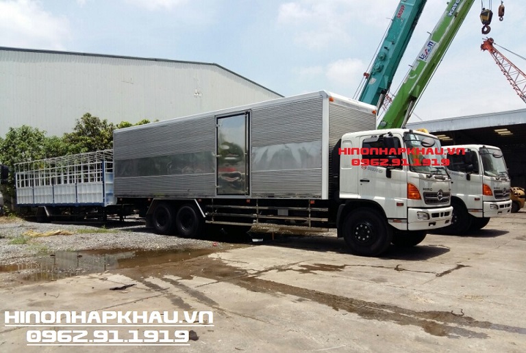 - Hino 15 tấn FL8JW7A 6x2 thùng dài 9,4m: chuyên dùng cho dòng xe vận tải thông dụng thùng kín, mui bạt, lửng và xe 2 tầng chở xe máy, pallet điện tử những mặt hàng cồng kềnh cần thùng dài