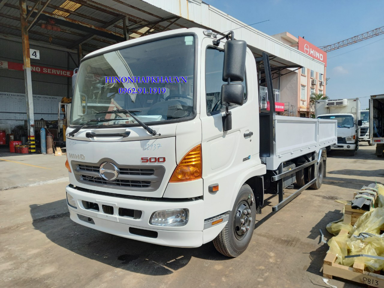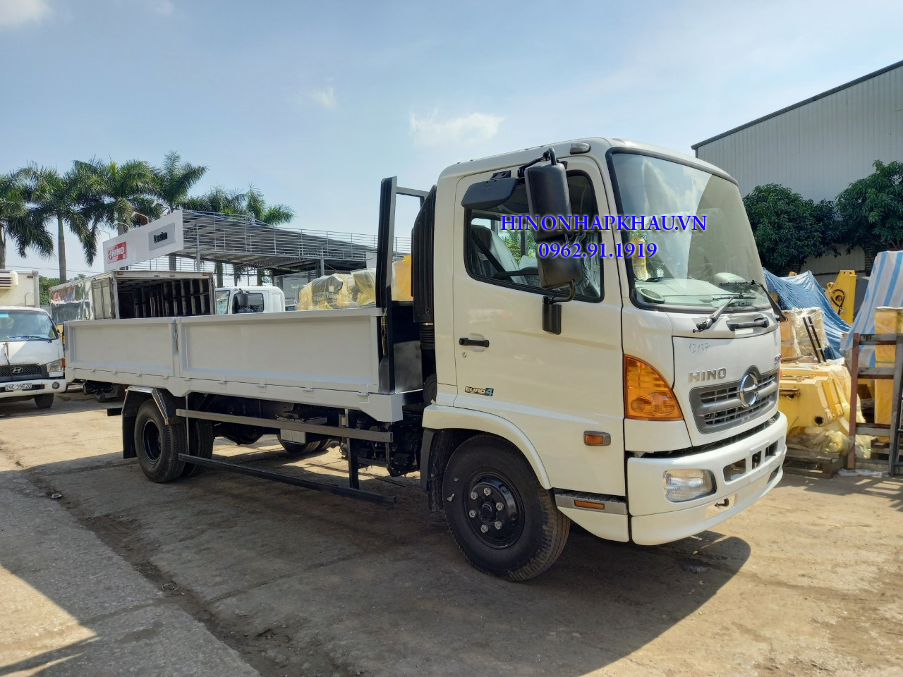 Hino 7t thùng lửng chở sắt thép kính ở Showroom Long Biên Hà Nội