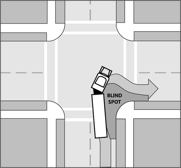Do kích thước những chiếc xe tải như trong các tai nạn và các loại xe siêu trường siêu trọng là rất lớn, nên hệ thống gương chiếu hậu không thể hỗ trợ người lái quan sát được toàn bộ tình trạng giao thông xung quanh chiếc xe. Một vài vị trí phía đầu xe, hai bên hông mà không lái xe không thể quan sát được gọi là điểm mù. Khi những phương tiện tham gia giông thông khác như xe máy, xe đạp, thậm chí ôtô con rơi vào điểm mù sẽ dẫn đến nguy cơ xảy ra tai nạn cực kỳ cao.