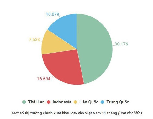 Tuy vậy, tính 11 tháng, đã có tổng cộng hơn 30.000 xe Thái Lan xuất sang Việt Nam với tổng trị giá là trên 555 triệu USD (trên 12.600 tỷ đồng).