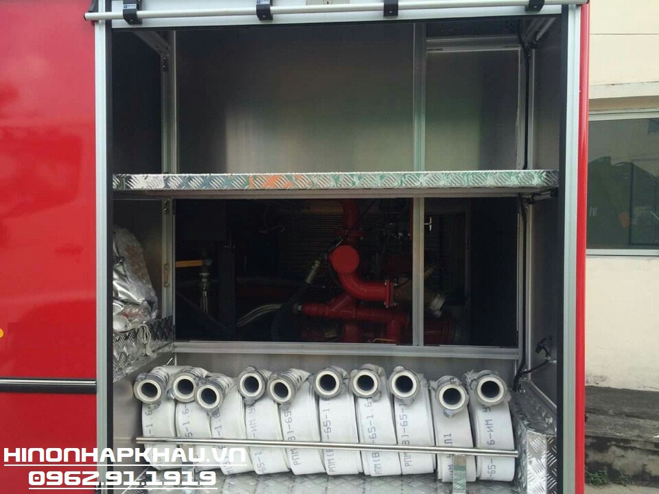 - Kết cấu chuyên dụng xe cứu hỏa Hino FG 5 khối với khung xương hợp kim bền chắc. Với dung tích xi téc chứa nước 5 khối ( 5000 lít ) và foam bọt 1000 lít.