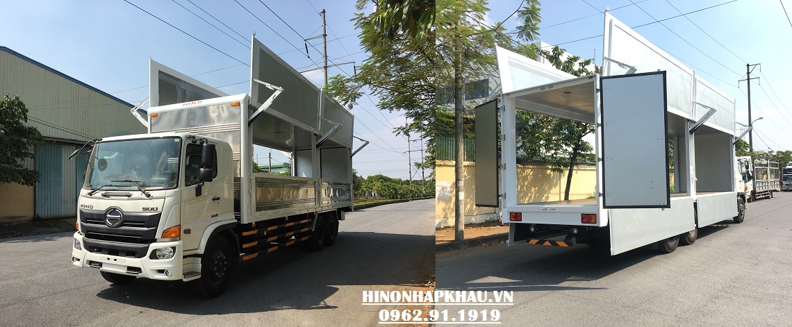 - Xuất xứ xe cơ sở: Nhập khẩu 3 cục từ nhà máy Hino Motors Nhật Bản, lắp ráp tại nhà máy Hino Motors Việt Nam. Hệ thống cánh dơi lưu động được sản xuất tại Việt Nam.