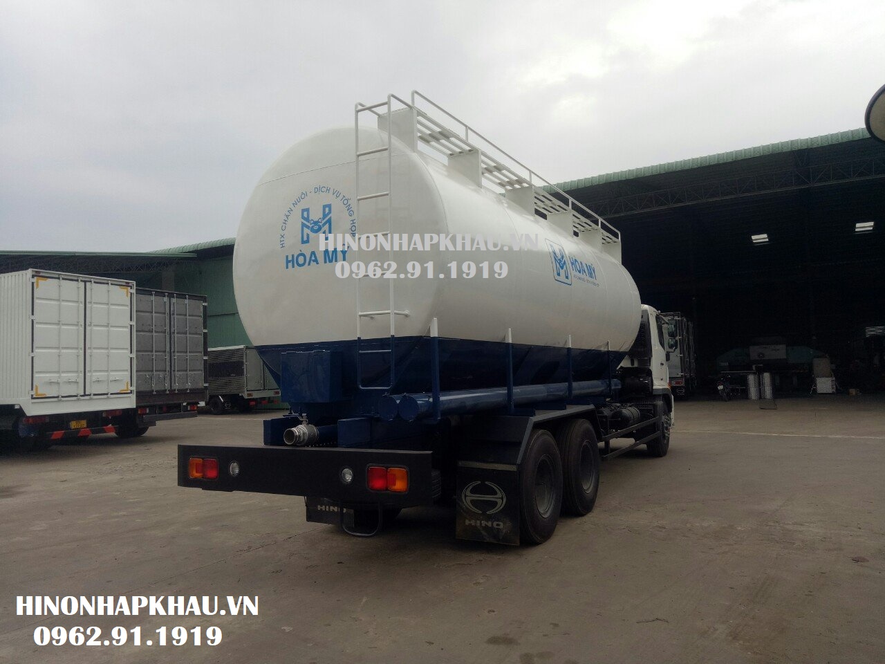 XE BỒN CÁM CHỞ THỨC ĂN CHĂN NUÔI 3 CHÂN HINO FL8JT8A KIỂU THỔI KHÍ NÉN