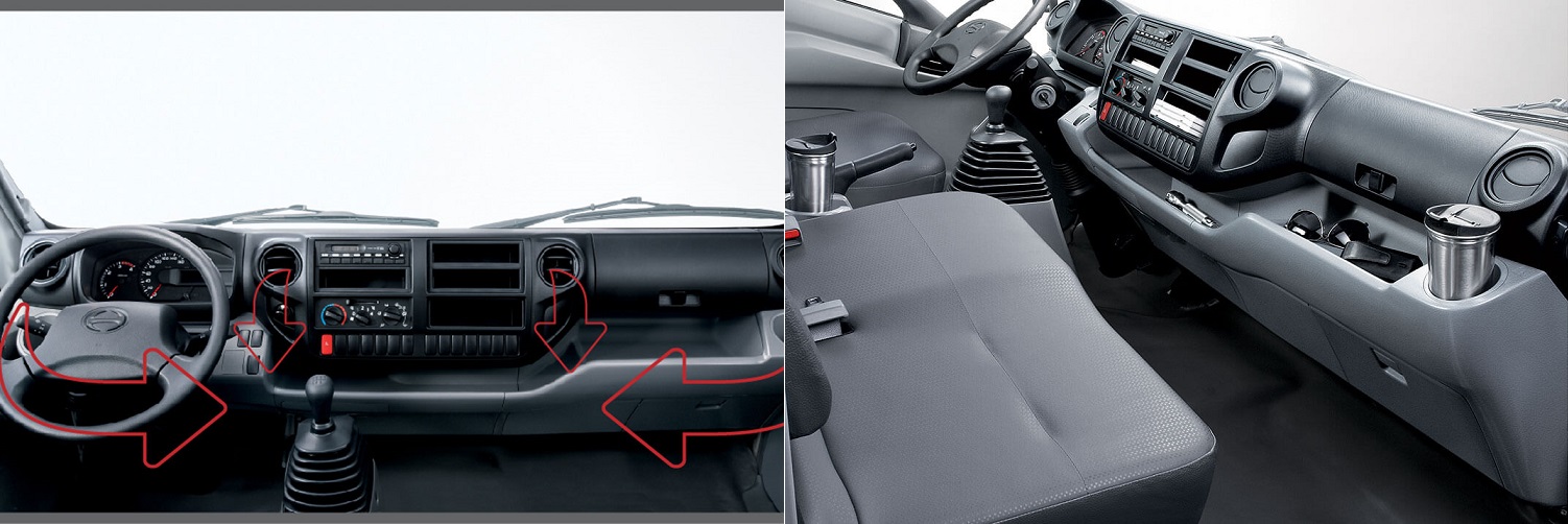 * NỘI THẤT XE PHONG CÁCH HIỆN ĐẠI SANG TRỌNG: Ghế da, sàn da, điều hòa cabin 2 chiều nóng lạnh, kính chỉnh điện, Radio Bluetooth, chỉnh góc chiếu đèn pha, hộc để đồ bên trên, Hino Conect...