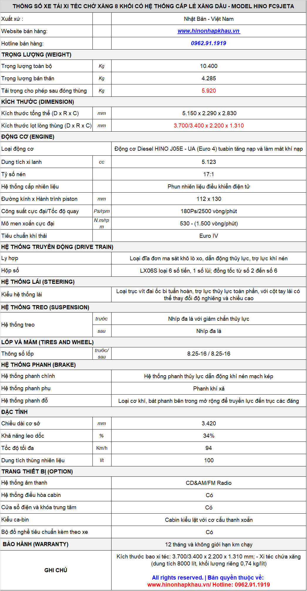 Xe bồn chở xăng dầu 8 khối có hệ thống bơm cấp lẻ xăng dầu lưu động - Model Hino FC9JETA : là dòng xe chuyên dụng chở xăng dầu loại dung tích nhỏ được chúng tôi sản xuất trên dây truyền công nghệ Nhật Bản.