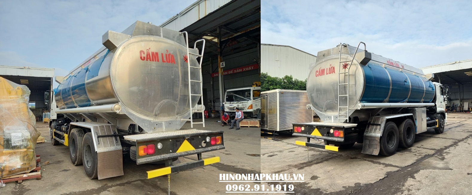 Xưởng sản xuất xe hino 3 chân 2 cầu thật chở xăng 20m3 bồn nhôm