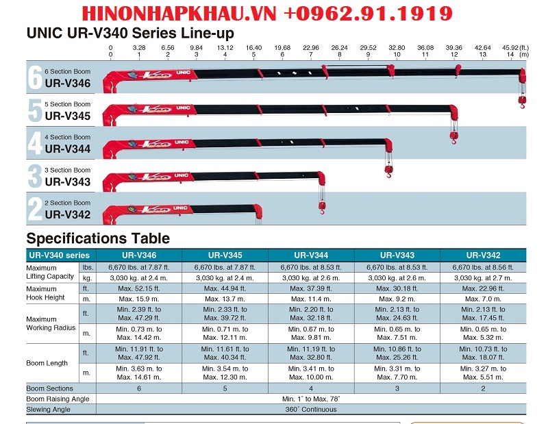 - Xuất xứ: cẩu UNIC URV344 nhập khẩu nguyên chiếc Unic Thái Lan