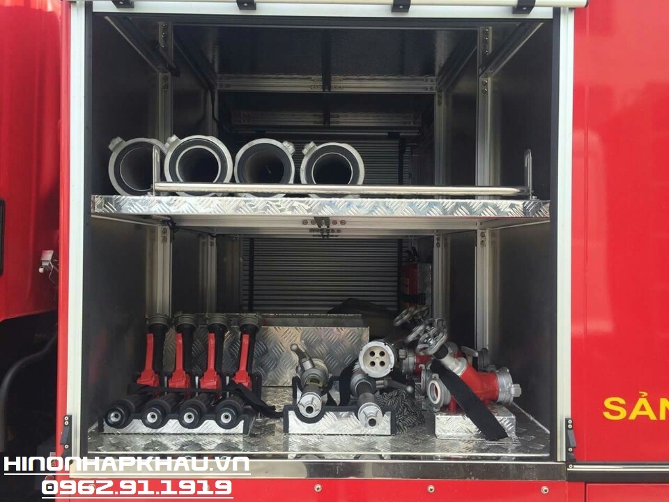 - Các thiết bị linh kiện xe Hino chữa cháy 4 khối lắp ráp được nhập khẩu từ Nhật, Mỹ và các nước G7. Hệ thống vòi phun, lăng... được thiết kế, bố trí lắp đặt đơn giản, thuận tiện dễ sử dụng.