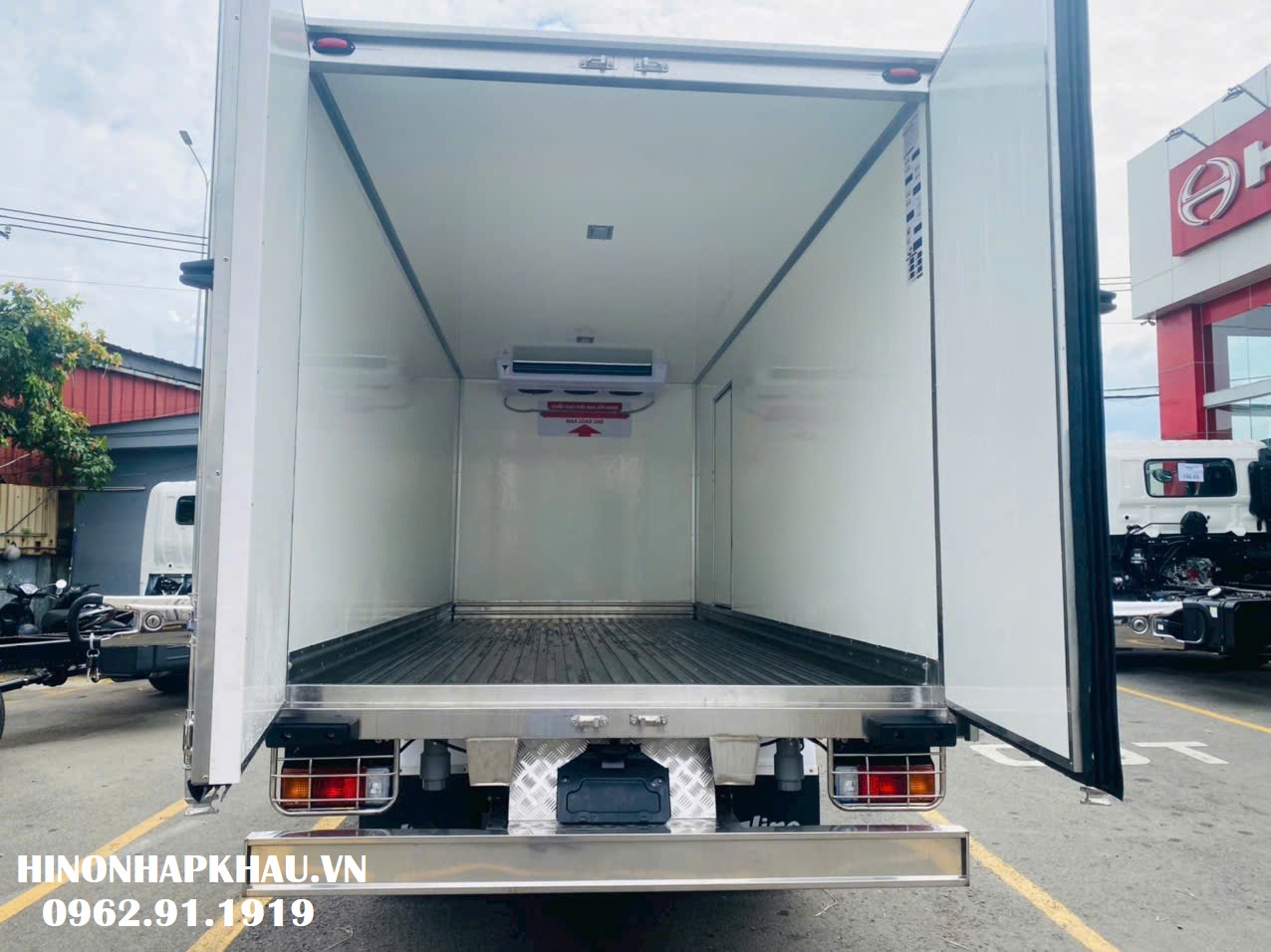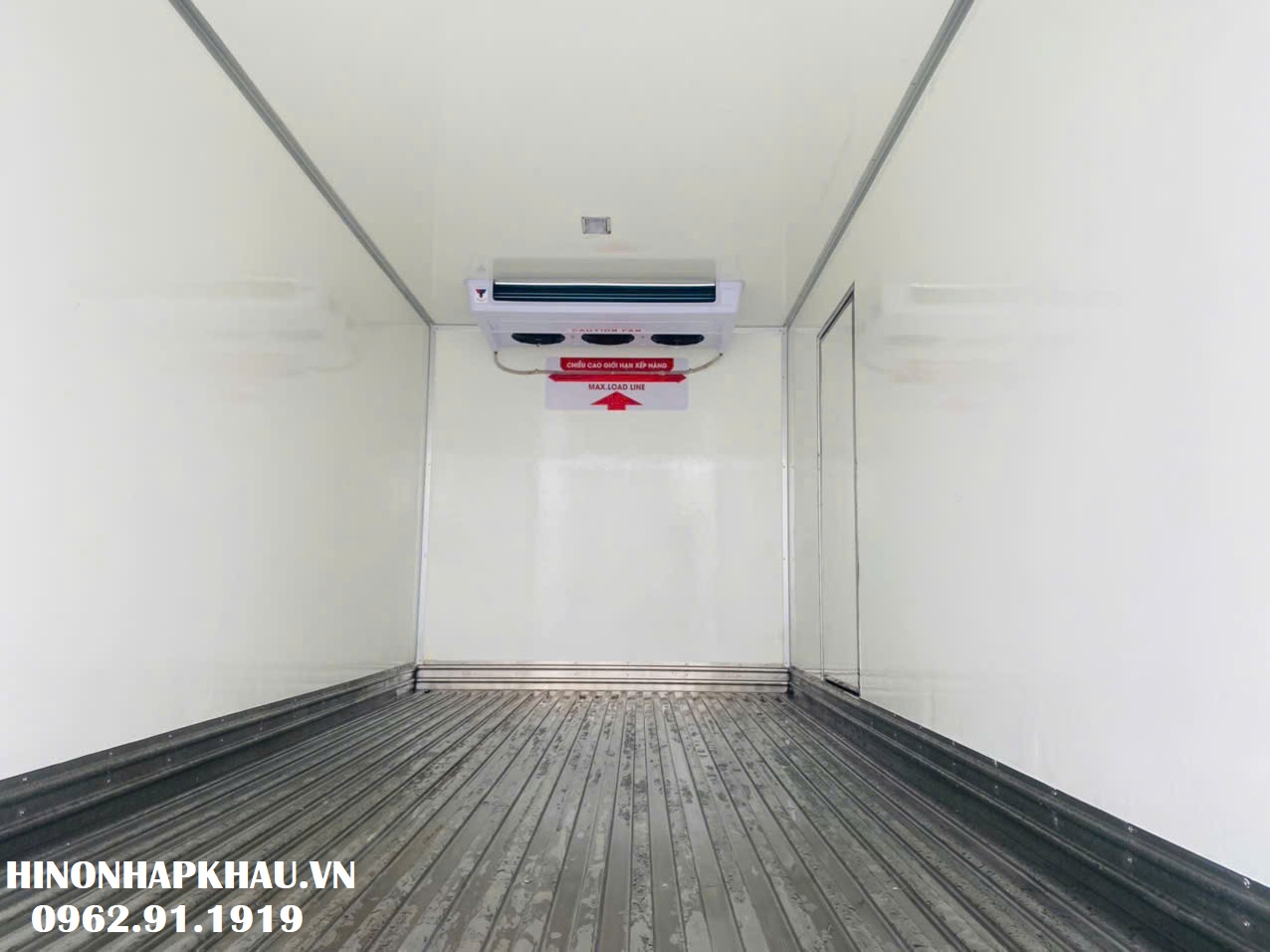 Thùng đông lạnh với vách Panel tấm ép nóng nhập khẩu, sàn Inox304 và máy lạnh Thermal nhập khẩu Hàn Quốc đảm bảo đạt nhiệt độ âm 18 độ. Xe tải đông lạnh Hino 3,6 tấn đảm bảo sự Bền Bỉ – Chất Lượng và độ Tin Cậy cao cho tất cả các nhu cầu của khách hàng.