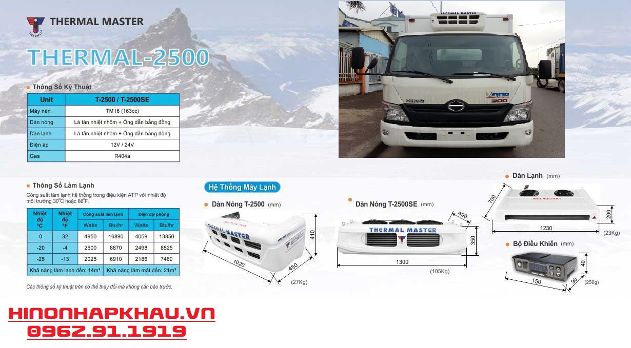 * THÔNG SỐ KỸ THUẬT MÁY LẠNH THERMAL MASTER T2500 LẮP TRÊN XE ĐÔNG LẠNH HINO XZU720L: