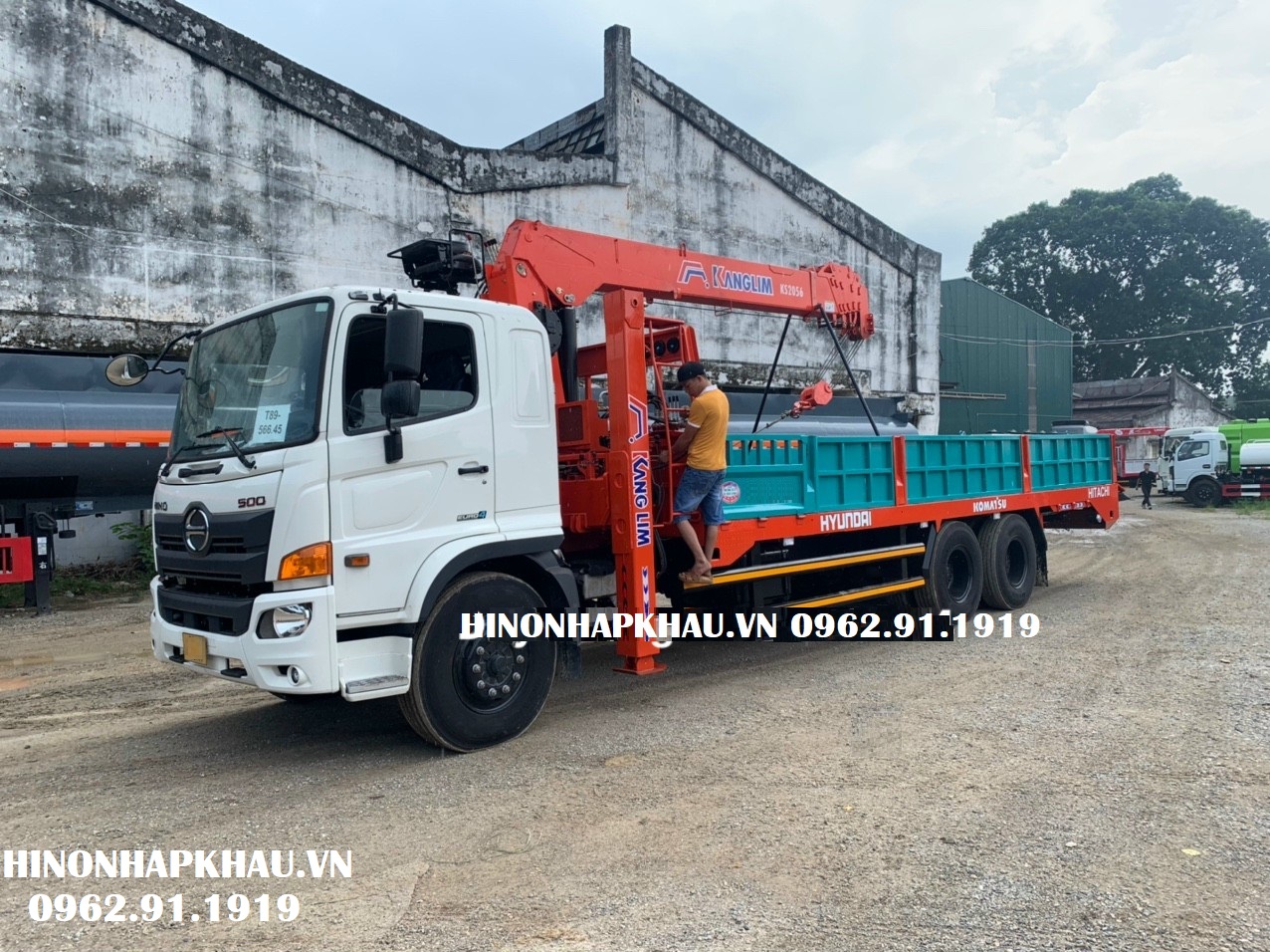 XE TẢI CẨU NÂNG ĐẦU HINO 15 TẤN FM8JW8A GẮN CẨU KANGLIM 8 TẤN CÓ CHÂN SÀN NÂNG ĐẦU CHỞ MÁY CÔNG TRÌNH