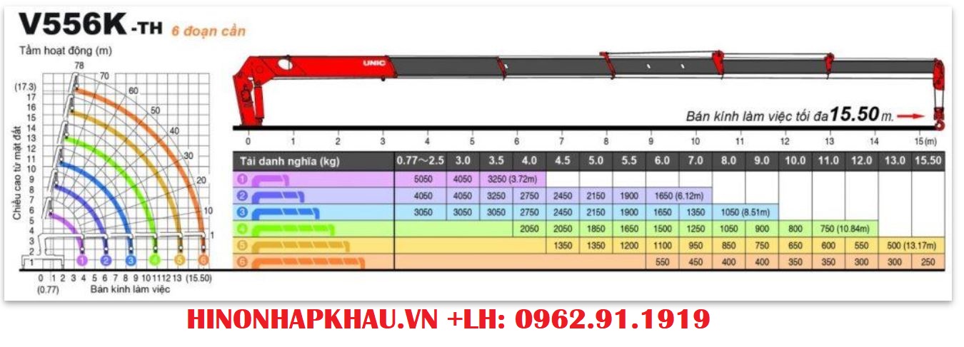 * THÔNG SỐ KỸ THUẬT CẦN CẨU UNIC 5 TẤN 6 ĐỐT MODEL UR-V556 (Spec. K-TH):