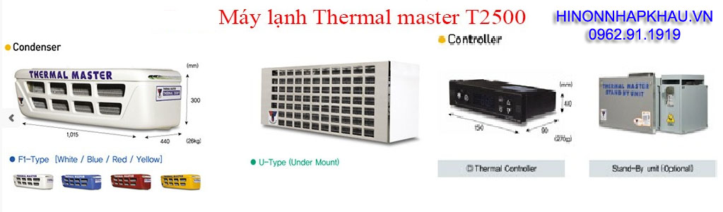 - Máy lạnh Thermal Master T2500 : Dàn lạnh siêu mỏng được thiết kế gắn áp trần trong thùng xe, dàn nóng được thiết kế gắn phía trước thùng xe. Lốc nén được vận hành bởi động cơ xe.