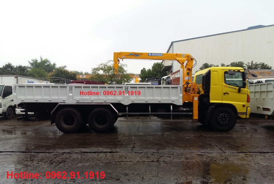 - Xe tải Hino 3 chân 15 tấn thùng dài FL8JTSL gắn cẩu SOOSAN 5,5 tấn SCS513