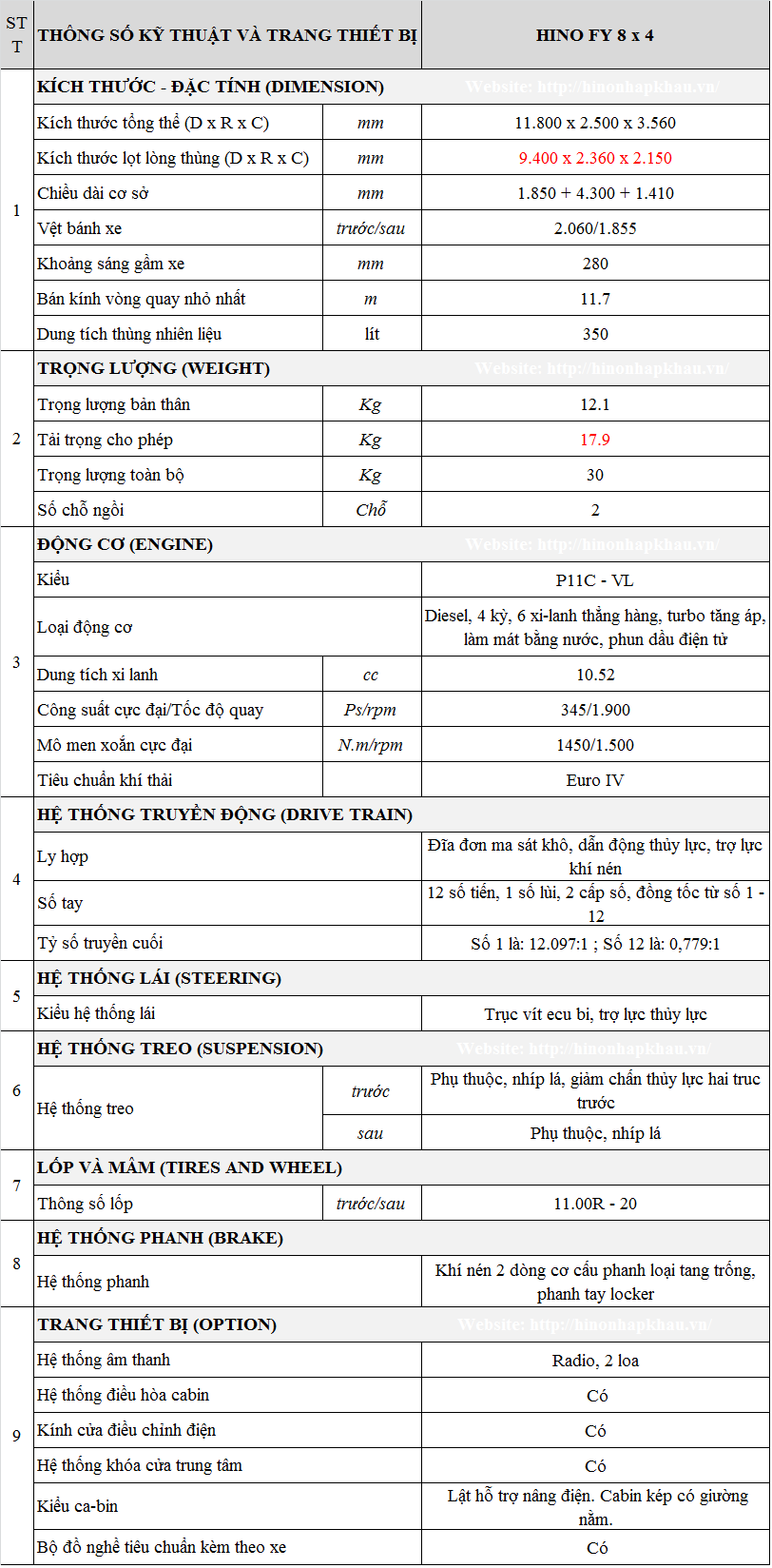 Xe tải hino FY 4 chân cabin chassis, xe tải hino 4 chân thùng lửng, xe tải hino 4 chân thùng mui bạt, xe tải hino 8 x 4 thùng kín, hino 4 chân gắn cẩu Soosan 10 tấn, xe hino 4 chân gắn cẩu Unic, hino 4 chân xitec, hino 4 chân chở xe máy; hino 4 chân đông lạnh; xe hino 4 chân trượt sàn;