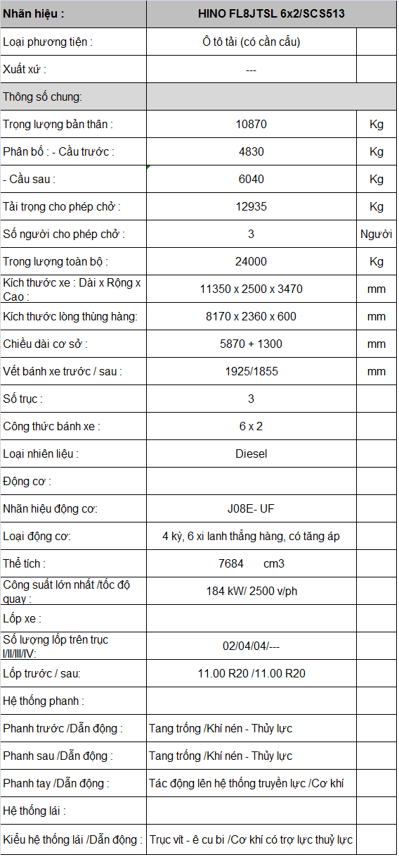 Xe tải Hino 15 tấn FL8JTSL gắn cẩu Soosan SCS513 Hàn Quốc 5,5 tấn 3 đốt :