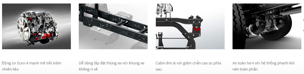 - Xe tải cẩu Hino FG lắp cẩu 5 tấn 3 khúc Tadano TM-ZT503H được trang bị động cơ Hino Euro 4 loại J08E-WE mới nhất cho công suất 260 Ps tại 2.500 Vòng/phút, trang bị lốp Bridgestone 11.00R20. Hệ thống cẩu tự hành được lắp đặt theo đúng tiêu chuẩn đã được Cục Đăng Kiểm Việt Nam kiểm duyệt cấp phép. Dầm ngang, dầm dọc thùng bằng Uduc, sàn thùng bằng gỗ dày 2,5cm trên phủ lớp tôn phẳng hoặc nhám cho kết cấu sàn thùng chắc chắn có khả năng tải hàng nặng. Chassis xe được gia cố đảm bảo vận hành cẩu chắc chắn, bộ trích công suất PTO chất lượng được lắp ráp nguyên bản từ nhà máy Hino Motors.