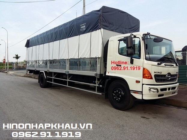 - Xe chở mô tô xe máy mui bạt bửng nâng 2 tần hino FG thùng dài 10m