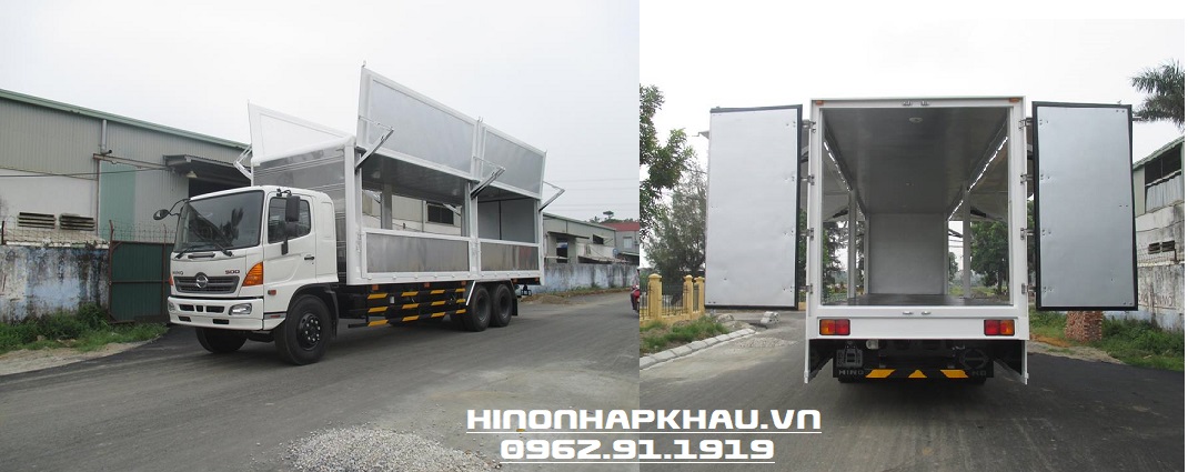 - Xe hino 3 chân thùng cánh dơi có thể coi là một biến thể của xe tải thùng kín thông dụng. Xe được trang bị động cơ Diesel Hino Euro 4 dung tích 7.684cc với hệ thống phun nhiên liệu điều khiển điện tử mới nhất cho công suất 280 Ps tại 1.900 Vòng/phút. Hộp số M009 với 9 số tiến và 1 số lùi. Xe trang bị lốp Bridgestone cỡ 11.00R20.