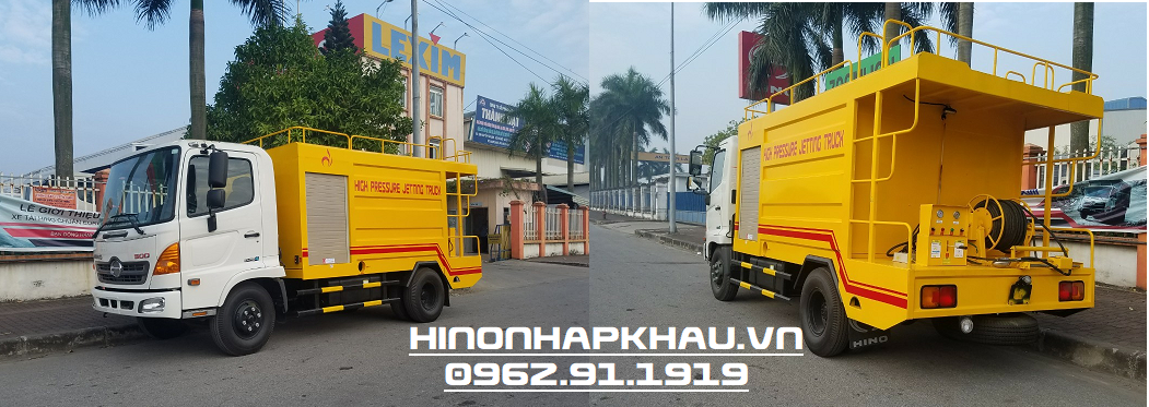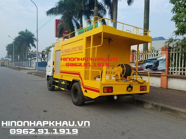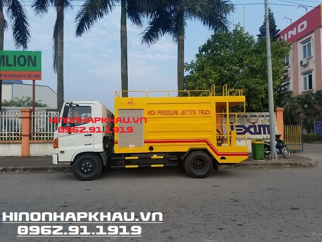 - Khác với dòng xe phun nước rửa đường thông thường, chúng tôi giới thiệu tới Quý khách hàng dòng sản phẩm xe tải Hino FC phun nước áp lực cao 5m3 chuyên dụng ngành môi trường chuyên được sử dụng để thông tắc cống, phá bùn, đầy bùn từ cống ra hố ga ... nhờ thiết kế hệ thống bơm áp lực cao, vòi phun chuyên dụng phù hợp với yêu cầu sử dụng.